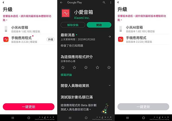 我按了「一鍵更新」頁面便跳到“PLAY商店”裡的「小愛音響APP」(如上面中圖)