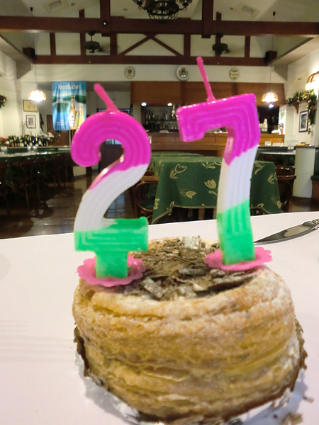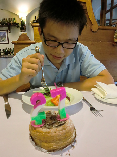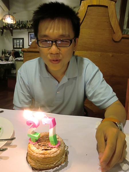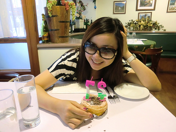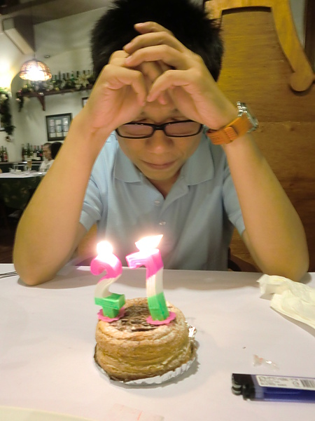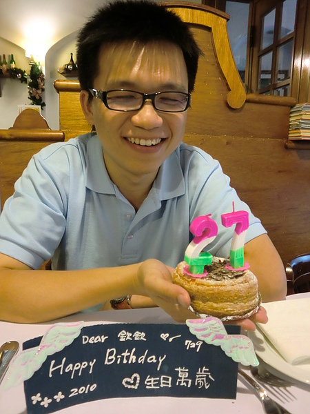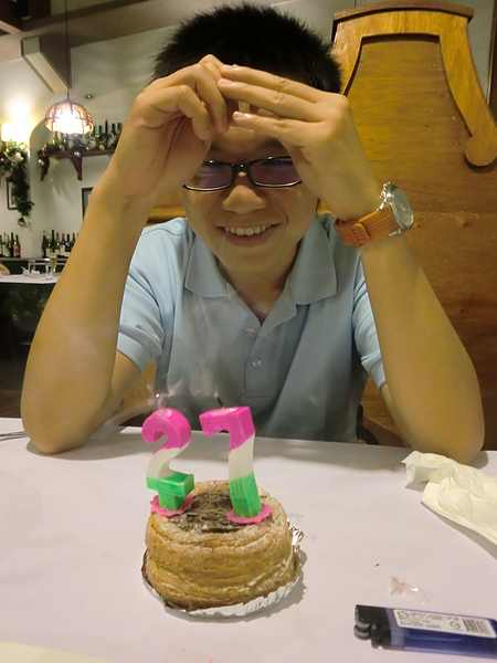 我先去了蛋糕店買一塊小蛋糕+拿蠟燭
