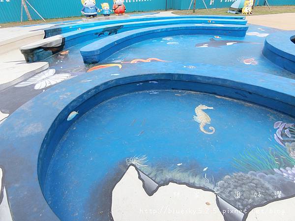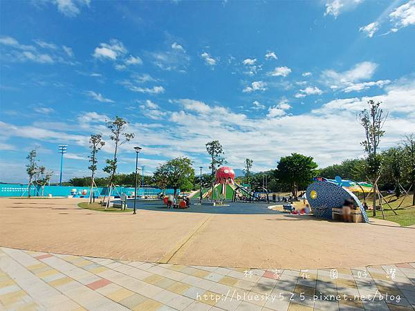 設有八爪章魚溜滑梯、扇形貝殼滑梯、攀爬鋼架、共融式蹺蹺板、轉椅及沙坑、立體彩繪地景座椅..