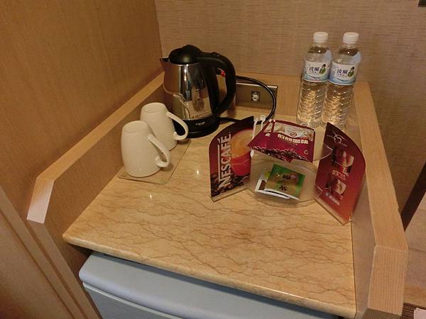 冰箱上面還有提供二瓶罐泉水和茶包、咖啡