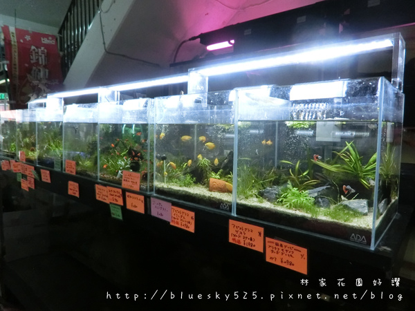 取扱魚種:グッピー・プラティの仲間(メダカ系),ネオンテトラの仲間(カラシン系),ディスカスの仲間(シクリッド系),ベタ・グラミーの仲間(アナバス系),アカヒレの仲間(コイ・ドジョウ系),コリドラス・プレコの仲間(ナマズ系),アロワナの仲間(古代魚系),その他(フグ・汽水魚など),マニア向け熱帯魚,マニア向けディスカス,マニア向けアロワナ,マニア向け国産グッピー,マニア向けアピスト,マニア向けベタ,水草,金魚・メダカ,淡水魚・川魚,エビ・ザリガニ(淡水),水棲カメ,両生類(ウーパールーパーなど)