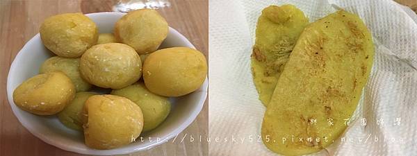 1.馬鈴薯削皮切片後(用水洗掉表面澱粉)入電鍋(外鍋1杯水蒸熟)